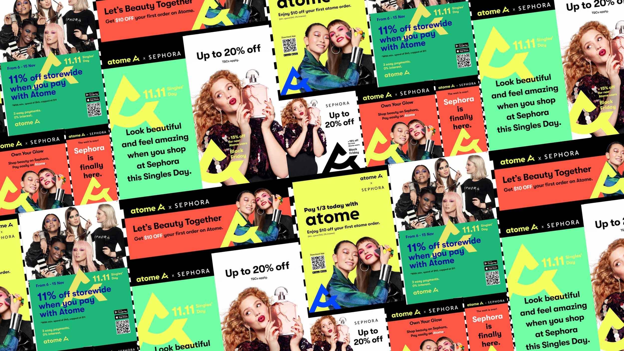 We partnered with Atome to help launch their end-of-year campaign, adapting marketing materials across Singapore and Malaysia. The assets were then dispatched to Sephora outlets nationally.